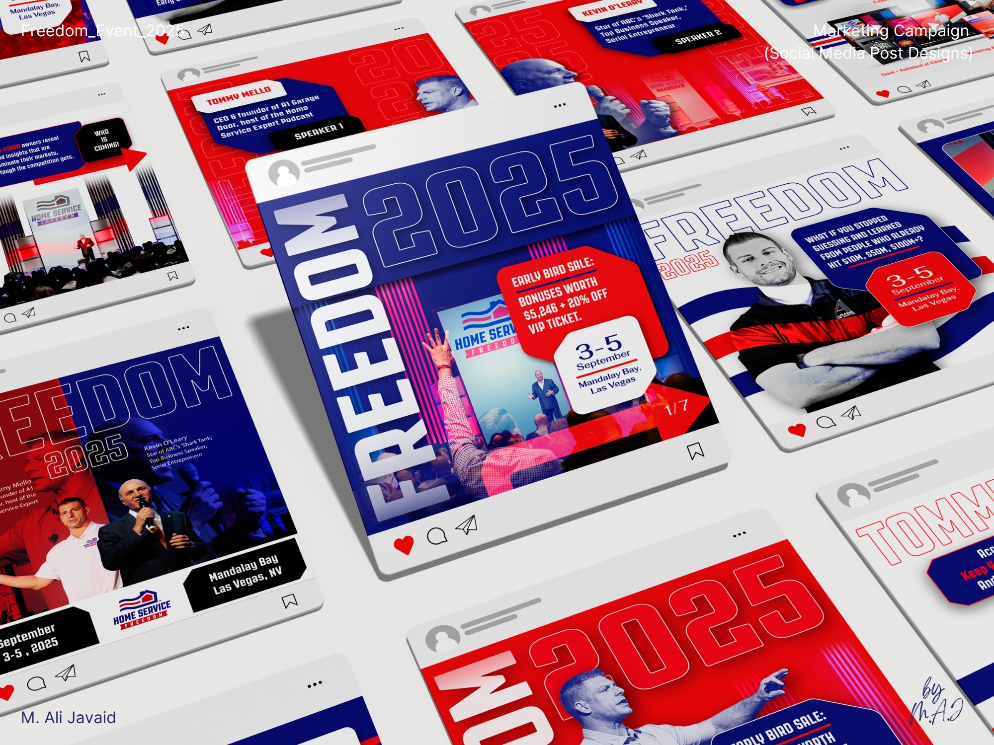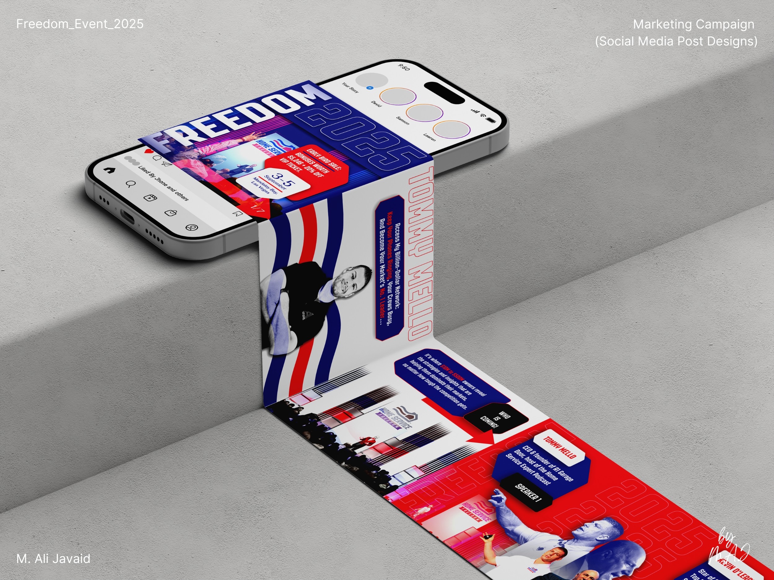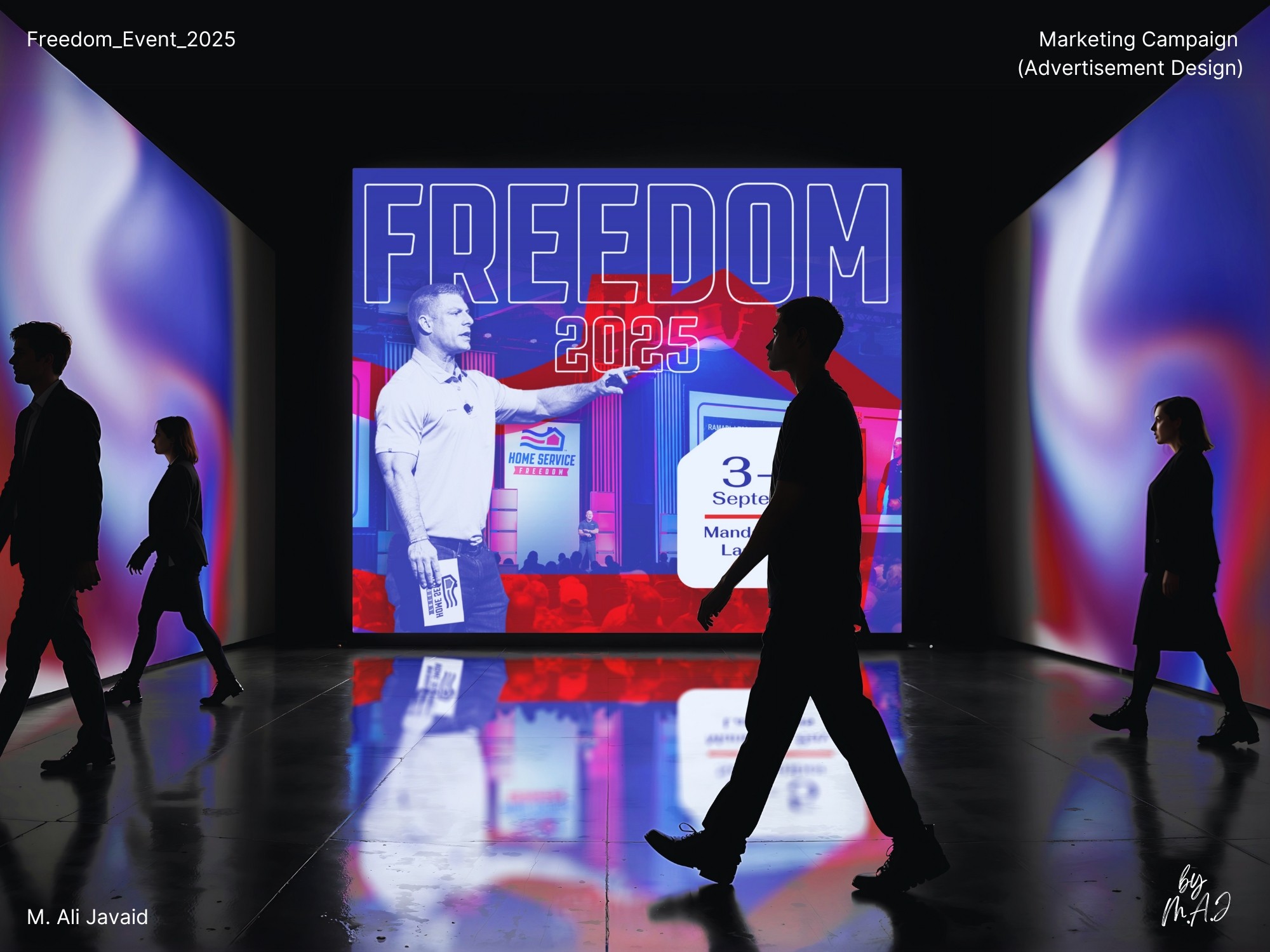 • One comment online described the Freedom Event as a space “where champions of the industry collaborate: not for profit, but to teach, inspire, and empower.” That line pushed me to design a bold, high-energy identity: using only existing brand colors, and building a sporty visual language from scratch (no proper guidelines).