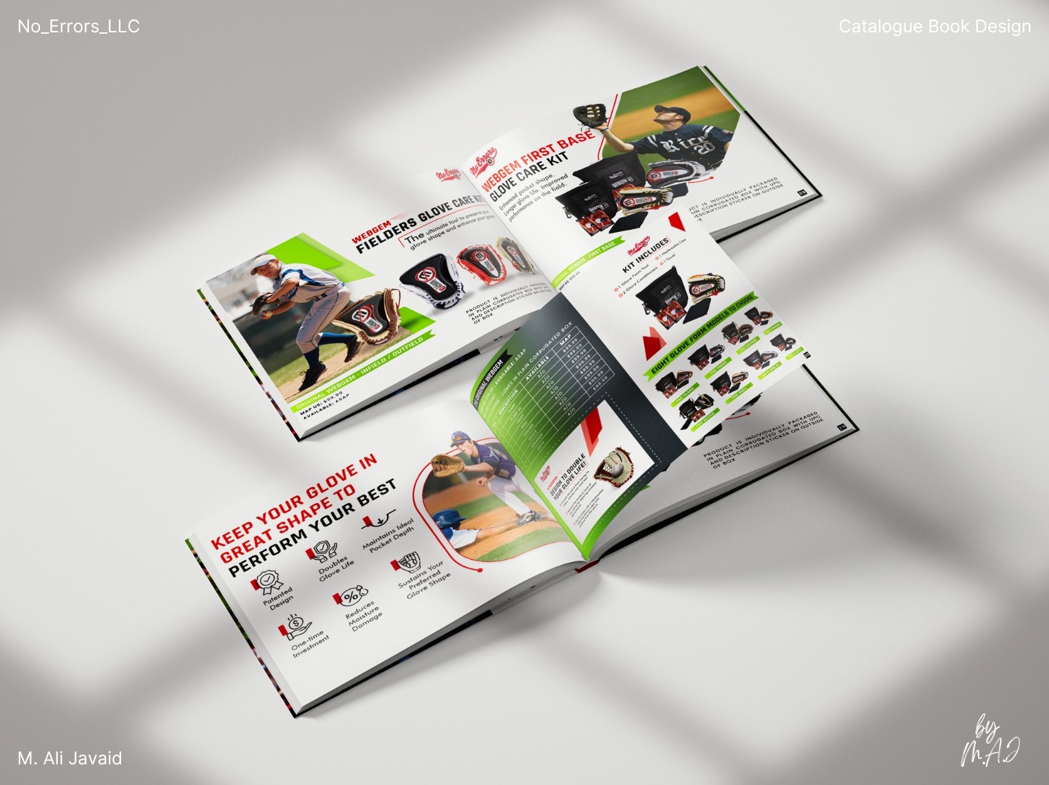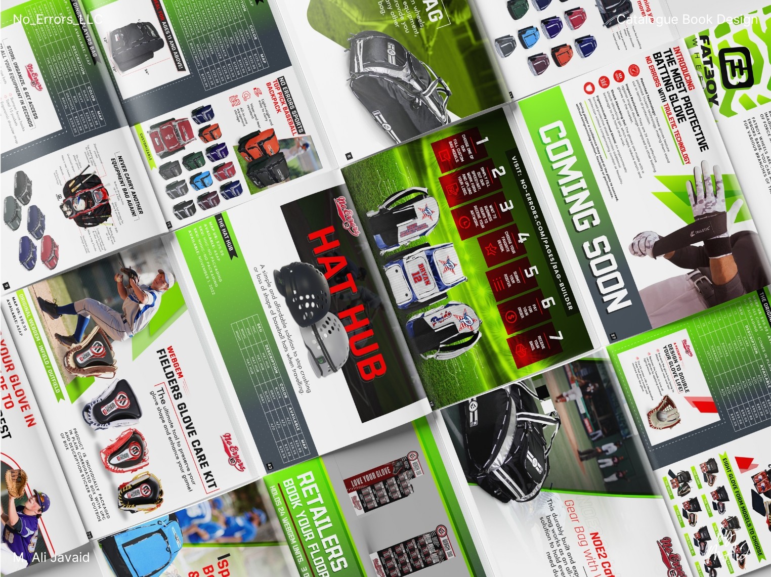 • With red and blue (primary brand colors) off the table, I introduced "#9ACD32." This choice wasn’t random: a yellowish-green drawn from softballs and field grass. It kept the catalog rooted in the sport, while white space and red headings echoed the clean simplicity of baseball: resulting in a look that was robust and focused.