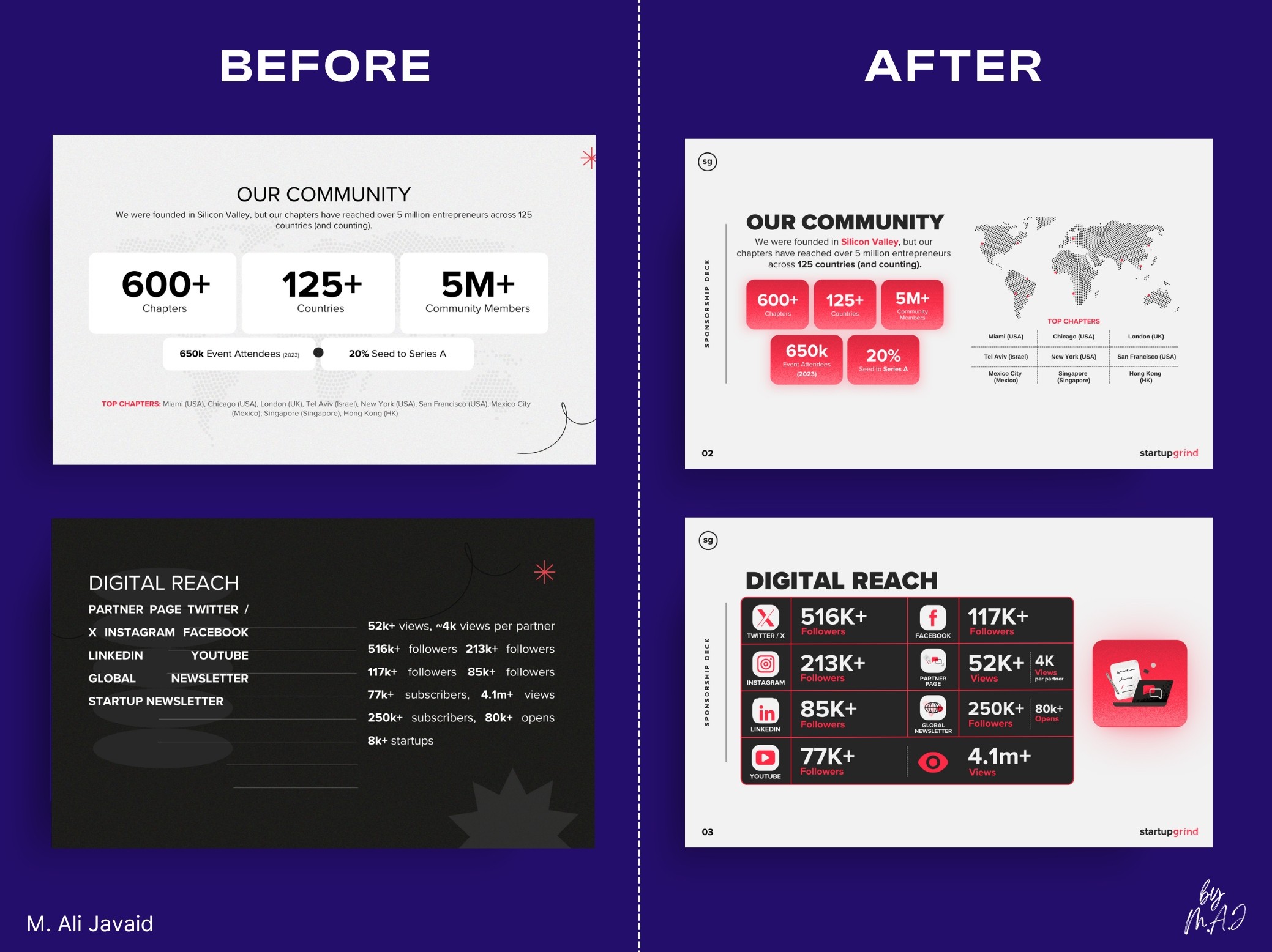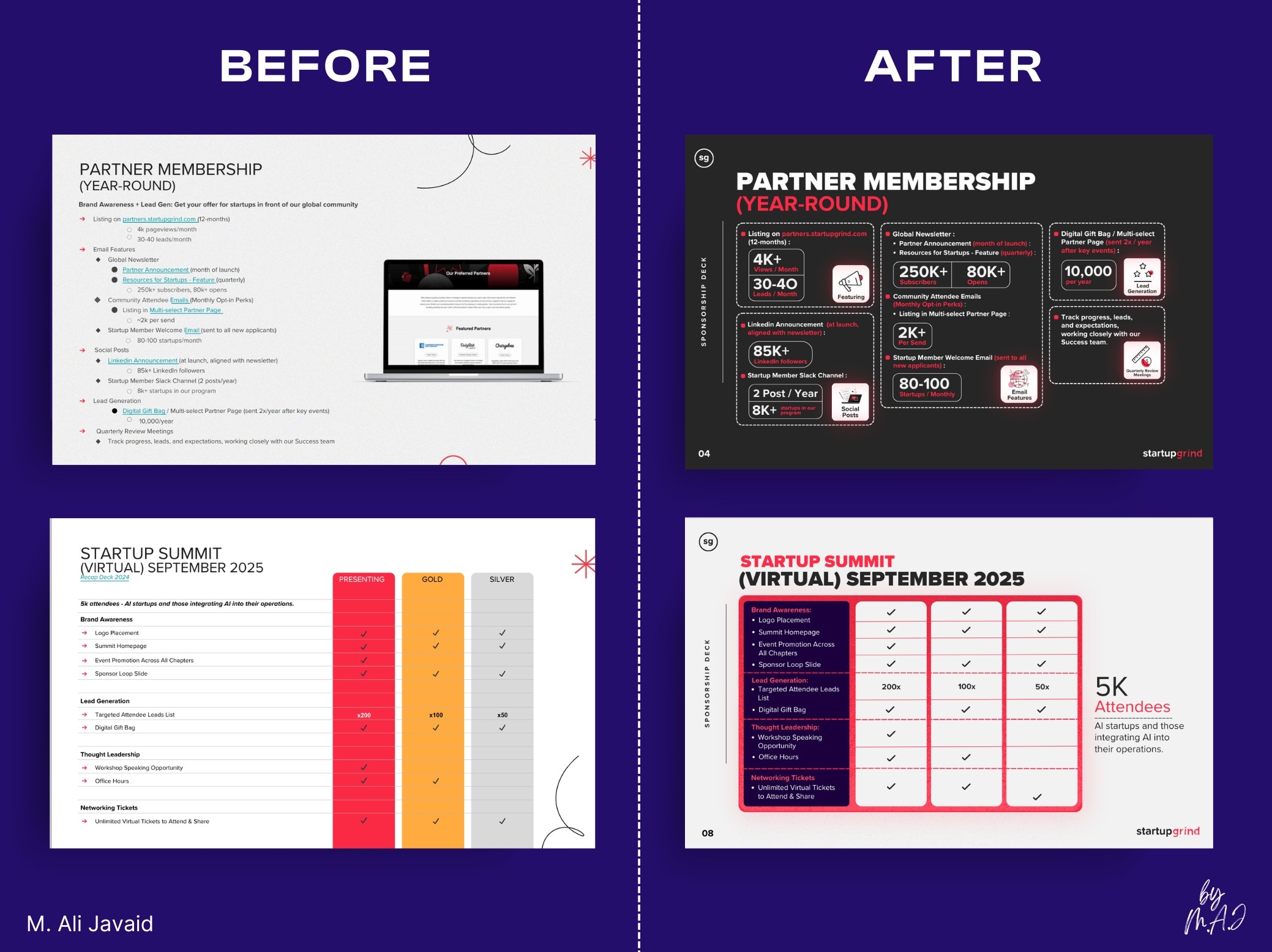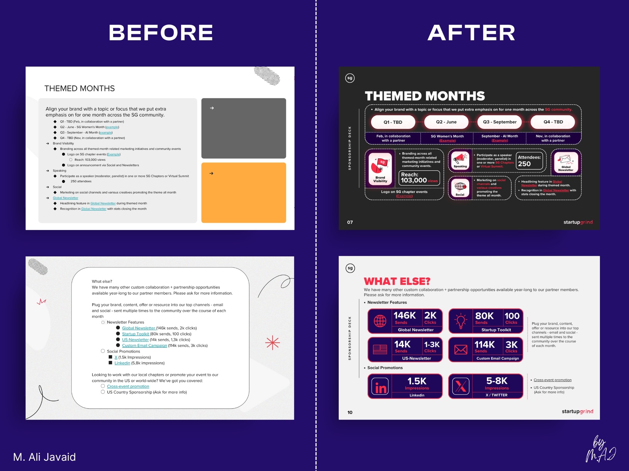 • 25% spike in sponsorship inquiries following the 27 pages purposefully designed, unified presentation design launch.